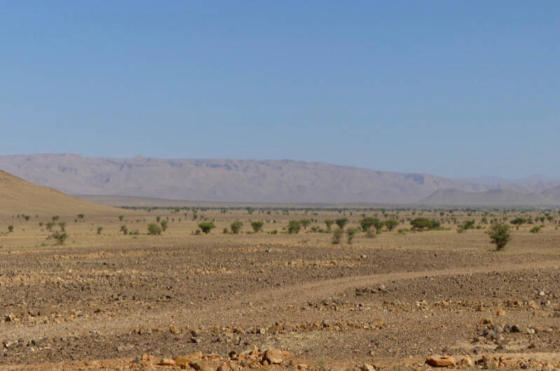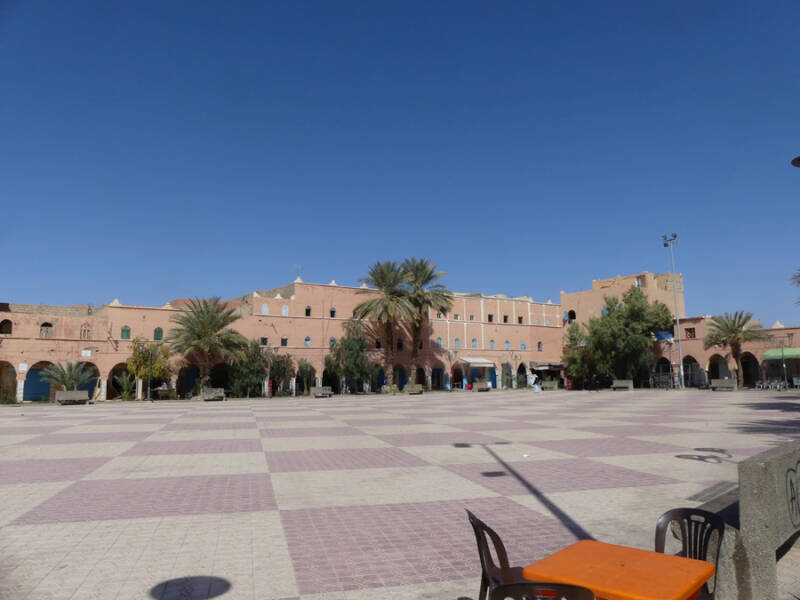 Opnieuw was het ongeveer 70km naar Foum Zquid, door een landschap die veel leek op wat we de afgelopen dagen vanaf Icht gezien hebben. Alleen was er nu nog minder verkeer, we kwamen 5 auto’s en een bus tegen en werden 1x ingehaald.