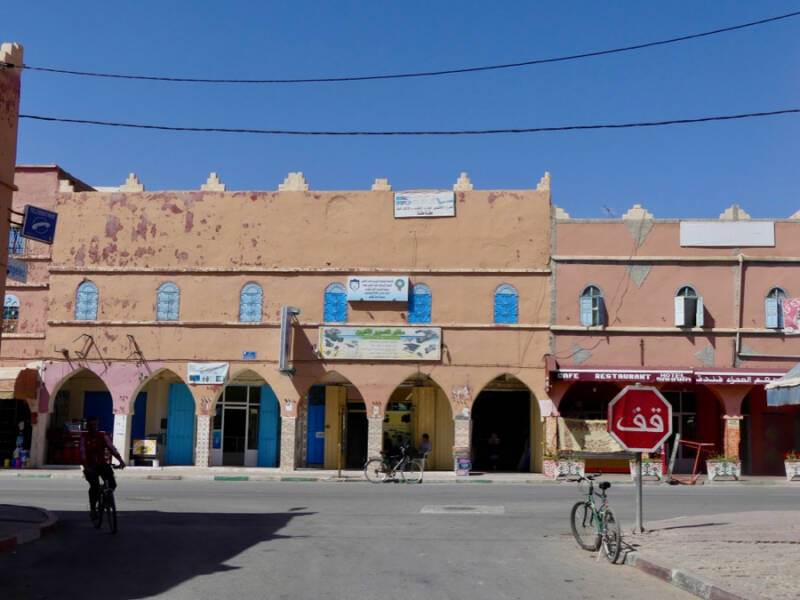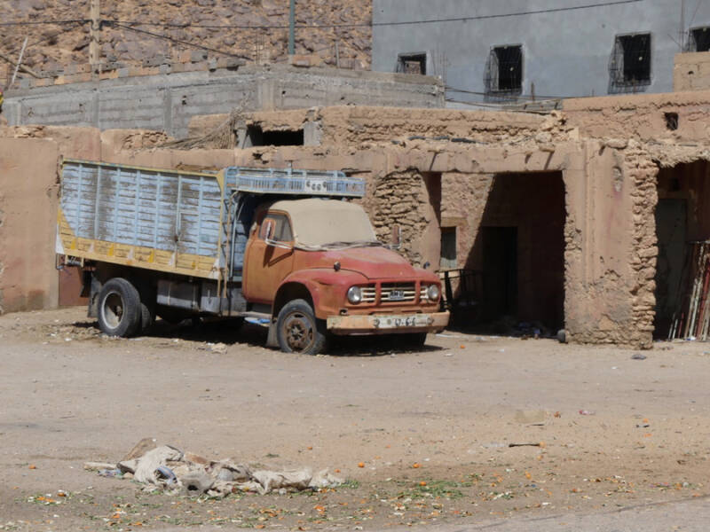 Tissint is een klein dorp waar je zo doorheen bent gewandeld. Het is weer heerlijk Afrikaans, arcades langs de hoofdstraat, groepjes mannen die in de schaduw op een terrasje of gewoon op de grond zitten en een stoffig, enigszins vervallen centrum waar een paar oude Bedfords staan weg te roesten. En er wordt hier nog volop ezel gereden en die wordt ook nog als transportmiddel gebruikt.