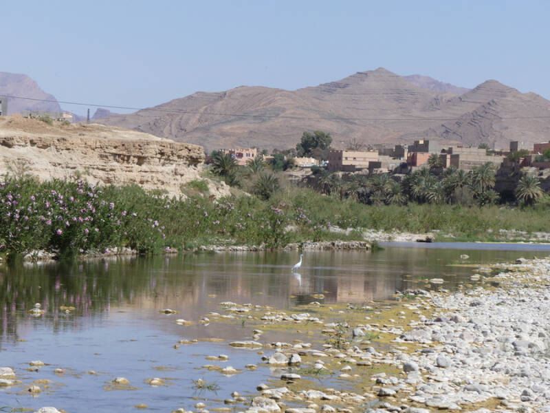 Vanmorgen zijn we een stukje langs de rivier, de Tata gewandeld. Die bevat langs het centrum en ten westen van de stad zowaar water. Er waren wat kleine zilverreigers en ook jongeren die aan het zwemmen waren, een paar vrouwen deden de was.