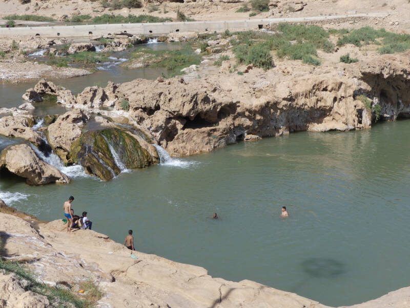 De waterval hier beneden de parking, door het mooie weer af en toe zwemmers
