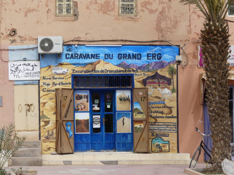 Zoals we gisteren al aangaven is in het centrum van Zagora niet bepaald sprake van een relaxte sfeer zoals elders in Zuid Marokko. Kun je in b.v. Tata of Foum Zquid rustig over de straat lopen en winkeltjes bekijken, in Zagora (Agdz ook trouwens) wordt je als mogelijke buit gezien door handelaren, die zich gretig op je storten. Handelaren, uitbaters van winkeltjes of reisbureaus, die je via al of niet via gewiekste verhaaltjes aanschieten om je te overhalen om hun winkeltjes binnen te komen of om je een reis in de woestijn aan te smeren. Het gedrag van handelaren hier komt door het grote aanbod van toeristen die vaak een woestijnrit per kameel of 4x4 willen maken. Ze zijn veelal naar Marrakech gevlogen en worden hier vervolgens gedropt of komen hier met een huurauto.