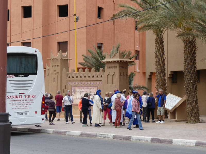 De NKC groep is vanmorgen voor een excursie per 4x4 naar de zandduinen van Erg Chegaga vertrokken, ze zullen een nacht in tenten slapen en zondag weer terug komen. De NKC organiseert al jaren deze reizen, er zijn er een aantal per jaar In zo’n begeleide reis zie je in een aantal weken de highlights van Marokko, je betaalt voor 2 personen al gauw €3000,-. Wij zijn nog nooit met een groepsreis ergens naar toe geweest, we zijn daar niet zulke types voor, wij reizen liever met z’n tweeën. We vinden het wel leuk om mensen te ontmoeten maar hebben behoefte aan de vrijheid om te doen wat we zelf willen.