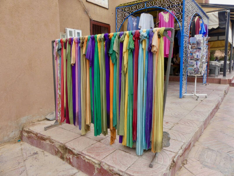 Aan het eind van de ochtend zijn we naar de souk gegaan, minder kleurrijk dan gisteren door al die vrouwen het bleek speciale vrouwensouk te zijn op zaterdagavond. Dan was de souk van vanmorgen eigenlijk maar ‘gewoontjes’, hoewel, genoeg te zien en het was nu een mix van mannen en vrouwen. En ook hier kost een glas verse jus d’orange op een terrasje 10Dh (€0,95)