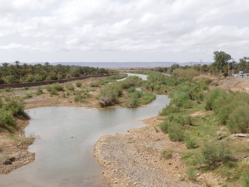 Vanmorgen zijn we via de achterkant van de camping naar de Drâa gewandeld. Dat hadden we al een tijdje niet gedaan, ondertussen zijn er nu grote huizen neergezet En het lijkt erop of men bezig is om een rondweg om Zagora te maken, iets wat men bij meer steden gedaan heeft.