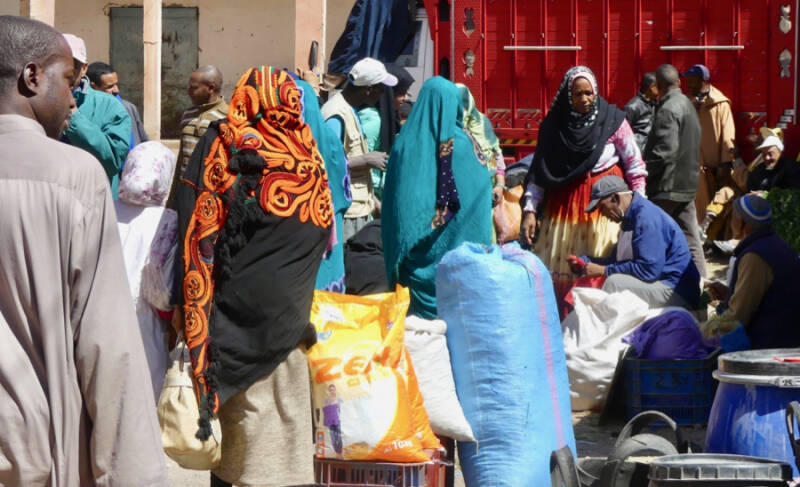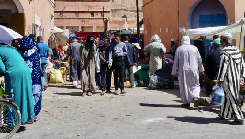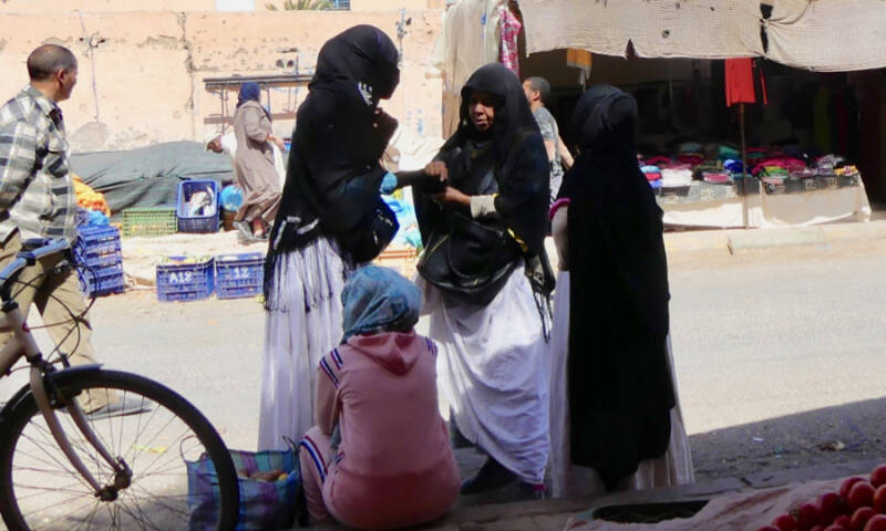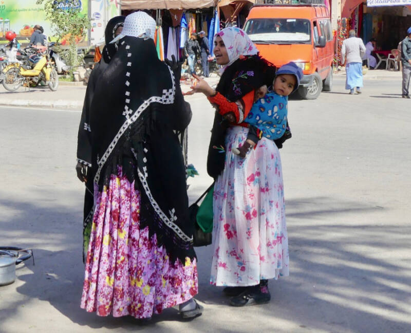 Af en toe zie je hier een vrouw met een kind op de rug, vaak lijken het nogal jonge meisjes. Er vinden in Marokko nog tienduizenden kindhuwelijken per jaar plaats, huwelijken met een minderjarig meisje, jonger dan 18 jaar, hoewel het eigenlijk in strijd is met de wet.