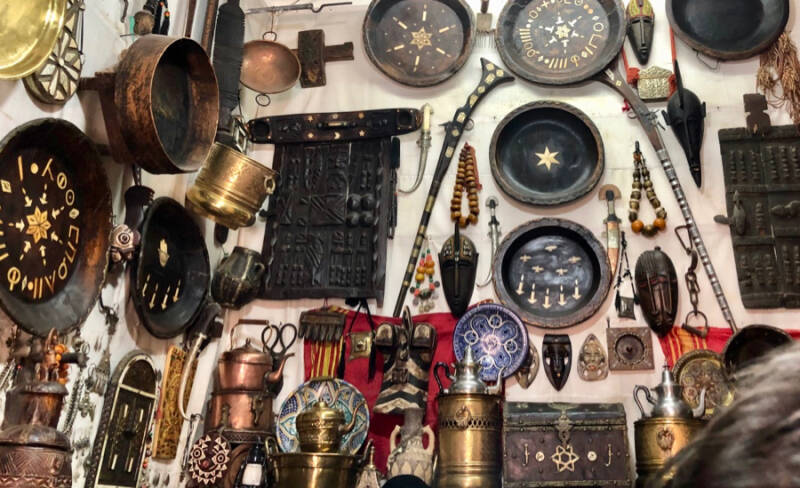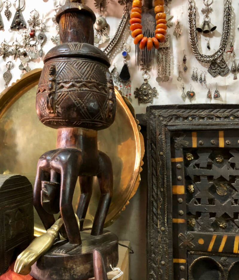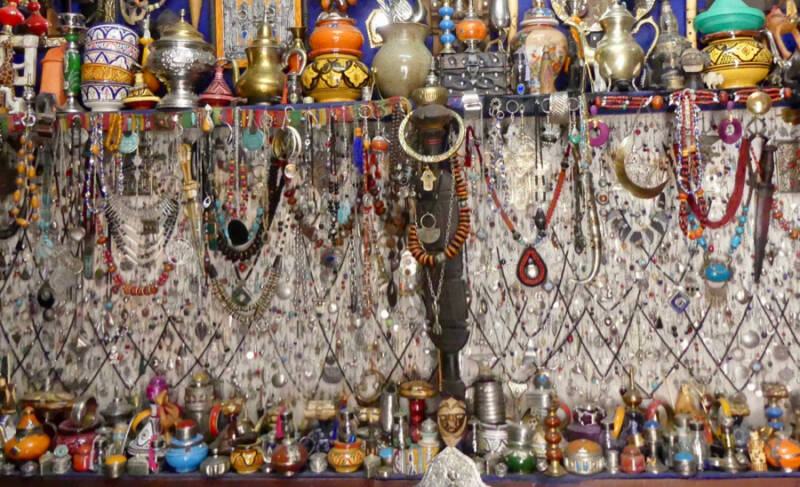 Nu komen we al heel wat jaren Marokko, toen we er de eerste keer kwamen begin jaren ’70, toen was er nog wel echt antiek te koop. Nu bijna 50 jaar verder is dat vrijwel onmogelijk, miljoenen toeristen (12 miljoen per jaar) hebben Marokko bezocht waarvan een groot deel toch souvenirs meenemen, vaak in de vorm van sieraden.