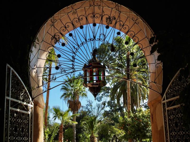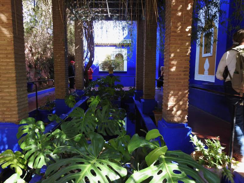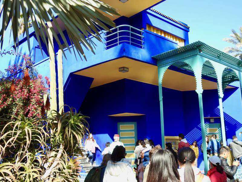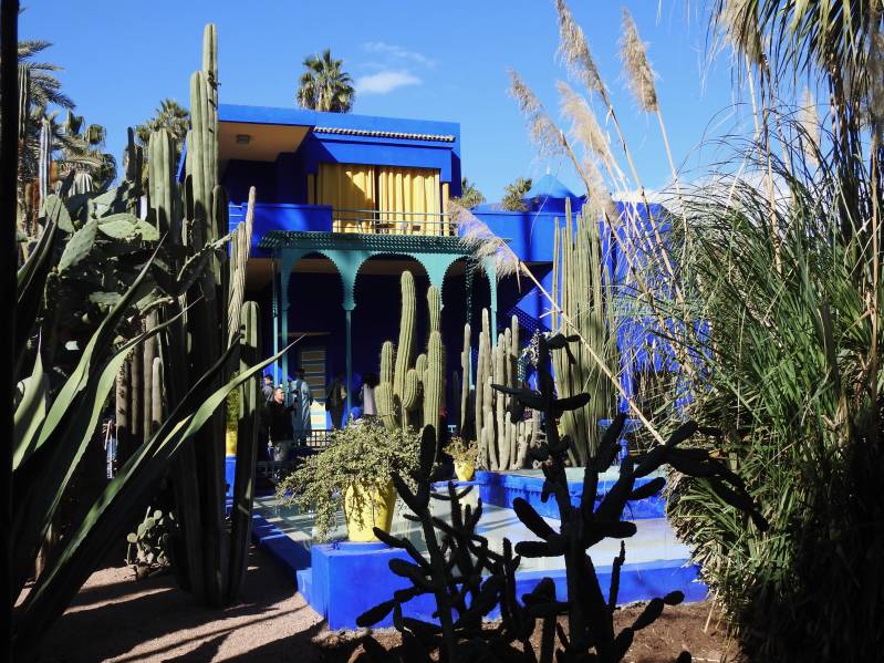 Het art deco huis in de Jardin Marjorelle, het helderblauw staat prachtig in de tuin