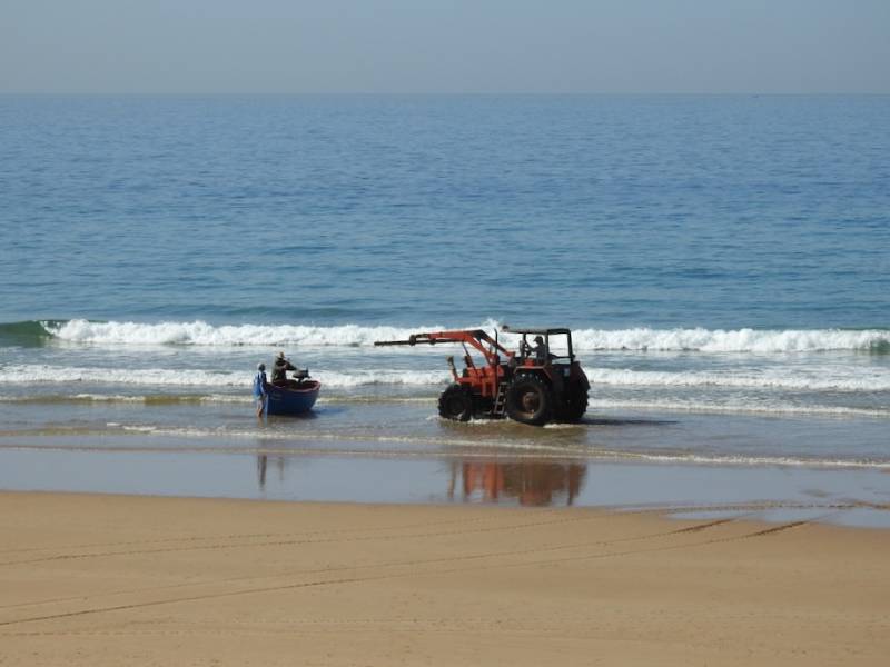 Er wordt op zondag ook minder gevist, de meeste vissersbootjes liggen gewoon aan wal. Die vissersbootjes worden met een tractor met kraan uit het water gehesen, we hebben een paar jaar geleden nog gezien dat ze met paarden uit het water werden getrokken.