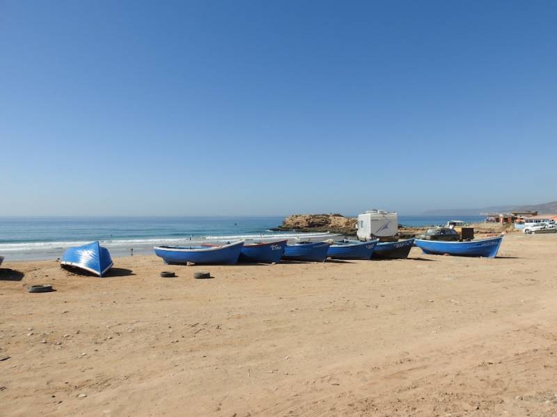 We blijven de plek waar we staan maar Aourir noemen met de toevoeging Imourane. Aourir omdat dat de grootse plaats in de buurt is en Imourane omdat dit het gehucht is wat hier bij ligt. De visafslag is ook genoemd naar Imourane maar het strand waar we hier staan heet weer Plage Tamraght. We zullen maar niet noemen hoe deze plek wordt genoemd in weer apps, dan wordt het helemaal verwarrend.