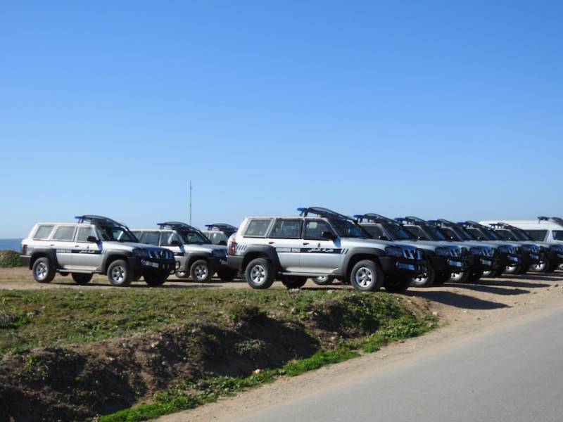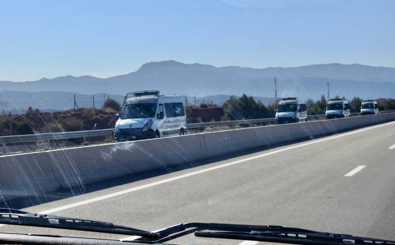 Vanaf Chichaoua was er een aanhoudende stroom van politieauto’s, -motoren, -pick-up trucks, -busjes, -bussen en zelfs een paar brandweerauto’s (of waren het waterwerpers) die in kleine colonnes of soms alleen tot in de buurt van Agadir, waar wij de tolweg verlieten, zich naar het noorden verplaatste. Het waren er vast meer dan 500, we hebben ze niet geteld want we moesten ook op het verkeer letten. Mensen die voor het eerst in Marokko zouden zijn, zouden zich afvragen of Marokko werkelijk zo’n erge politiestaat is.
