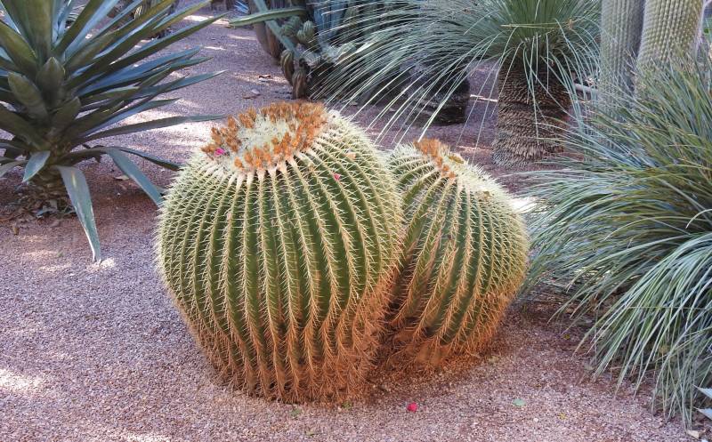 De grote bolcactussen hierboven zijn bijna uitgebloeid.