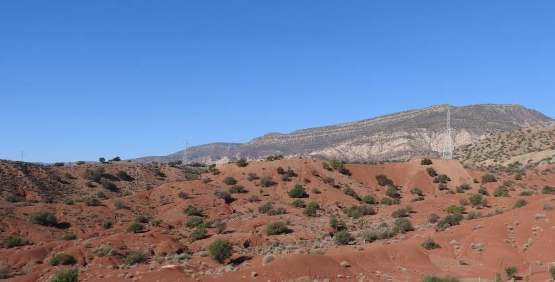 Omdat het in de Atlas al een tijdje niet geregend noch gesneeuwd heeft , was de blik op de toppen van de Hoge Atlas niet zo fraai als anders omdat die nauwelijks met sneeuw bedekt waren.