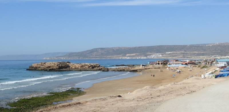 Een onderdeel van het plan Azur was Taghazout Beach, die zou in 2014 voltooid moeten zijn. Dit plan heeft ook door corruptie vertraging opgelopen, een grote bouwonderneming ging daardoor failliet. Maar zoals we zagen tijdens onze wandeling zijn er volop bouwactiviteiten en zal het oorspronkelijk plan uiteindelijk wel uitgevoerd worden. Dat oorspronkelijke plan behelsde hoogwaardige hotel-, toeristische en wooncomplexen. Bijzondere nadruk zou worden gelegd op sportinfrastructuur en vrijetijdsactiviteiten met de oprichting van een beachclub, en golf-, tennis-, surf- en voetbalfaciliteiten. Er moesten 12.376 bedden komen en het zou in 2014 klaar zijn.