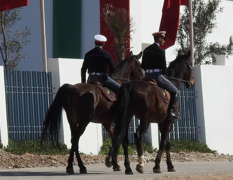 Wat dat betreft is het net zoals als met de komst van de koning, vandaag is hij in ieder geval niet gekomen. In Agadir waren ze vanmiddag dranghekken aan het plaatsen en heerste er een beetje opgewonden sfeer hoorden we. Hier kwamen wel 2 hooggeplaatste politieofficieren te paard voorbij, zal wel een inspectie zijn. Ook zijn er tenten geplaatst achter de nieuwe vismarkt zoals ze het hier noemen en zijn de trappen naar het strand geschilderd. Zelfs de traptreden zijn tot 2x toe geveegd, tamelijk zinloos in onze ogen , het verhaal over de komst van de koning wordt dus vervolgd.