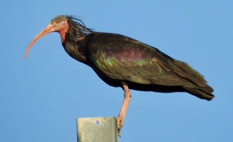 Vanmiddag kwamen hier 2 heremietibissen waarvan er een op een paal ging zitten