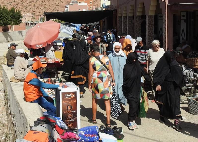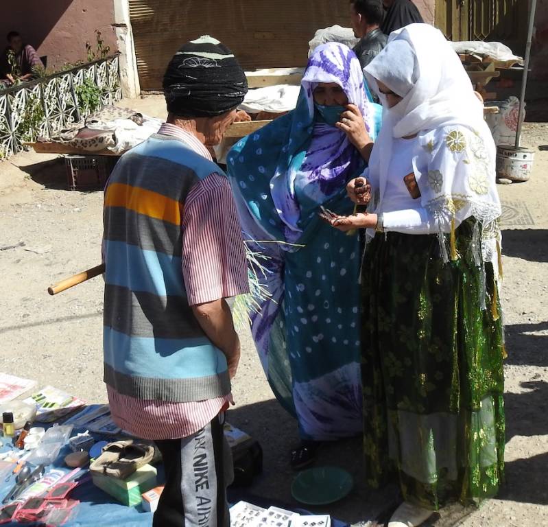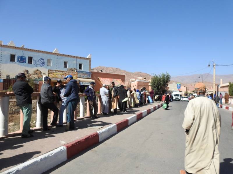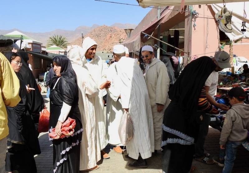 Zo’ n markt heeft voor de bewoners uit Tafraout niet alleen de functie om boodschappen te halen maar zeker van oudsher een sociale functie. Kan men nu per bus/busje/auto/brommer uit omliggende gemeenten komen, vroeger gebeurde dit per ezel/muilezel al dan niet met kar erachter . Dus was het in de omliggende staten een drukte van belang, vonden ontmoetingen plaats waarbij er gekust wordt, gelukkig kussen mannen elkaar ook , iets waar sommige westerse mannen nog steeds moeite mee hebben. en hingen mensen, mannen, tegen de brugleuning aan.