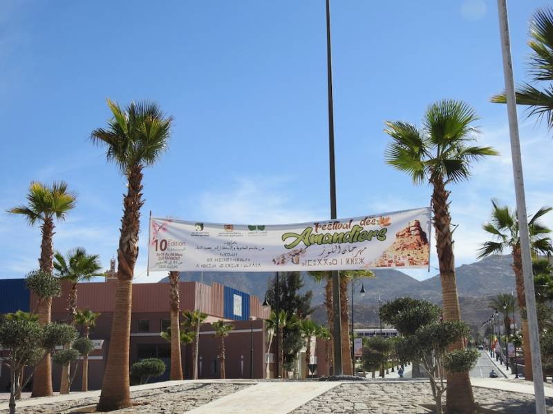 Het festival begint morgen hier in Tafraout en duurt t/m zondag. Stonden er al een tijdje de tenten waar altijd kraampjes staan met streekproducten, nu was er ook een podium opgebouwd voor de optredens, En er hangen overal spandoeken en borden met de aankondiging dat het de 10e keer is dat het amandelbloesemfeest wordt gehouden. Of het inhoudt dat nu met dit lustrum ook een speciaal programma zal zijn , dat weten we niet, we zullen het programma nog wel ontvangen.