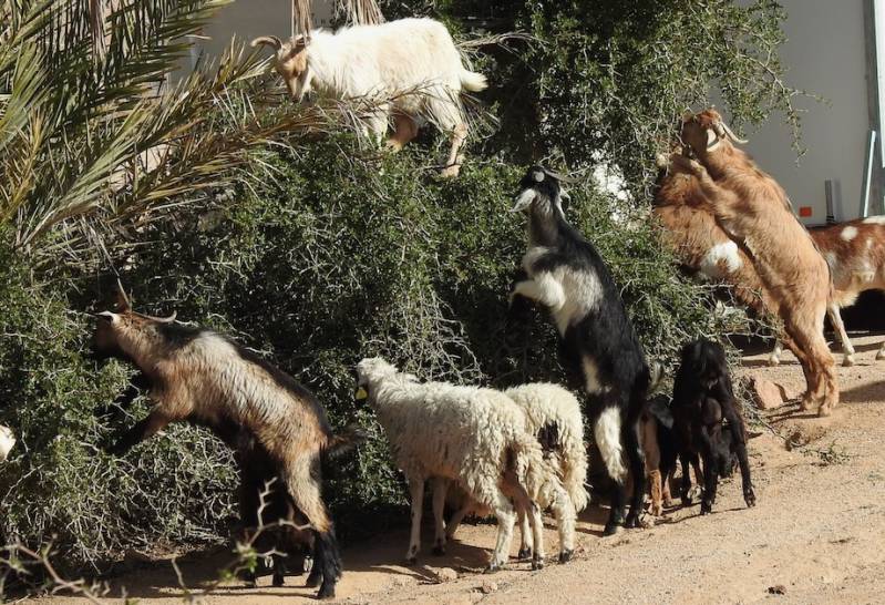 Het uitzonderlijke weer dit jaar is voor ons alleen maar prettig te noemen, 5 weken nu al is de temperatuur te hoog voor de tijd van het jaar. Andere jaren in Tafraout hadden we ’s avonds al snel de kachel aan, nu nooit en dat heeft niets te maken met de zomertijd in Marokko, nu is het ongeveer kort na half 8 zonsondergang, andere jaren half 7. Nee de temperatuur is te hoog, ook ’s morgens hebben we hier meestal de kachel aan gehad, soms vroor het ’s nachts, nu is het snel opgewarmd in de camper. Voor de Marokkanen natuurlijk een ramp dit droge weer in het zuiden. Daar wordt dan ook over geklaagd, net zo als men in Nederland klaagt over het te natte en te winderige weer van de afgelopen tijd.