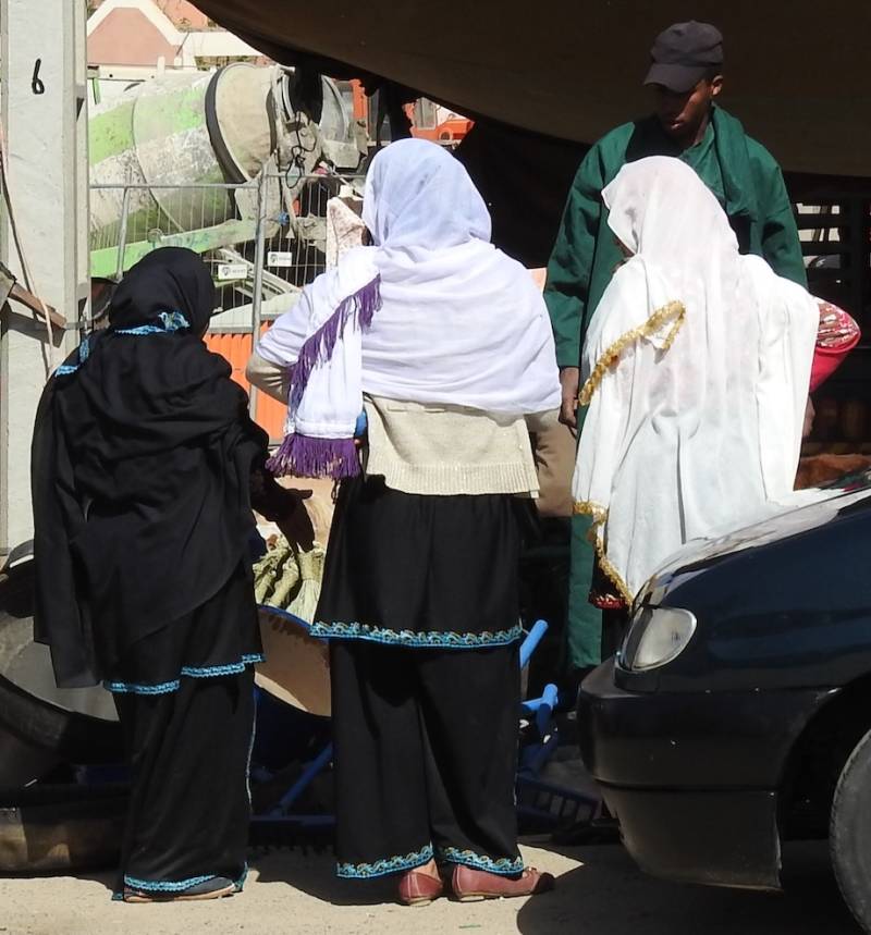 Vrouwen in Tafraout behoren tot de Ammeln stam, ze dragen meest zwarte doeken met een kleurtje afgebiesd.