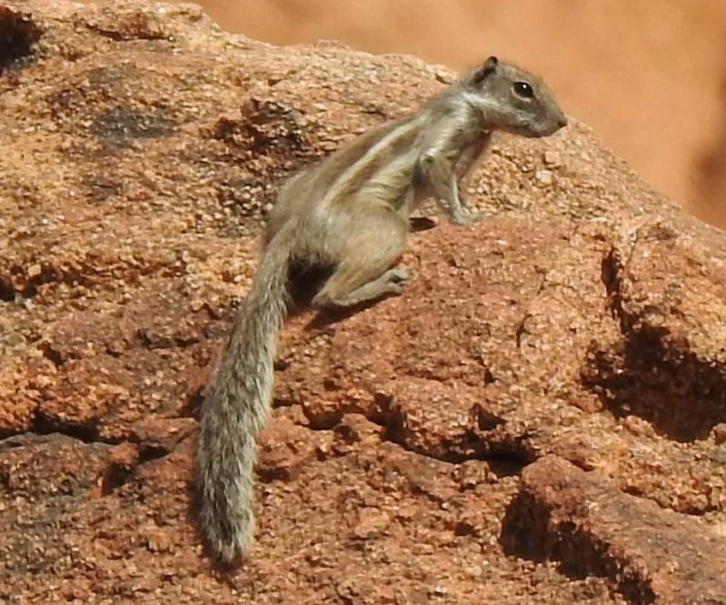 We zijn vanmorgen weer een eindje wezen wandelen, eerst langs de rotsen en dan aan de noordkant het dorp weer inwandelen. Voor het duo duo ‘deuk en kreuk’ een geschikte afstand ,zo’n 5km. We hebben diverse Barbarijse grondeekhoorns in de bergen gezien en een enkele zwarte tapuit.