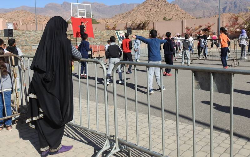 Ook waren we gisteren bij de sportieve manifestatie die plaatsvond op het terrein van het technisch lyceum naast de camperplaats. We zagen verschillende leslokalen, o.a. voor autotechniek en voor een timmeropleiding. Het is een opleiding vergelijkbaar met ons MBO. Je ziet de streekfunctie voor het onderwijs in Tafraout weerspiegelt in het feit dat er 2 slaapzalen of -kamertjes waren, een voor meisjes en 1 voor jongens