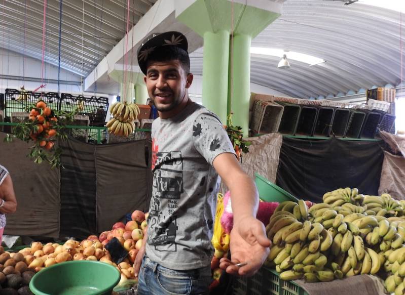 Ook in de winkeltjes in het centrum is het erg druk, mensen uit de omgeving nemen nu de kans waar om eens flink in te slaan, goederen, kruidenierswaren en cosmetica, die ze in de omliggende gehuchten niet kunnen krijgen. Veel producten gaan in een grote manden van de vrouwen die ze dan op de rug dragen met vaak een draagband om het voorhoofd.