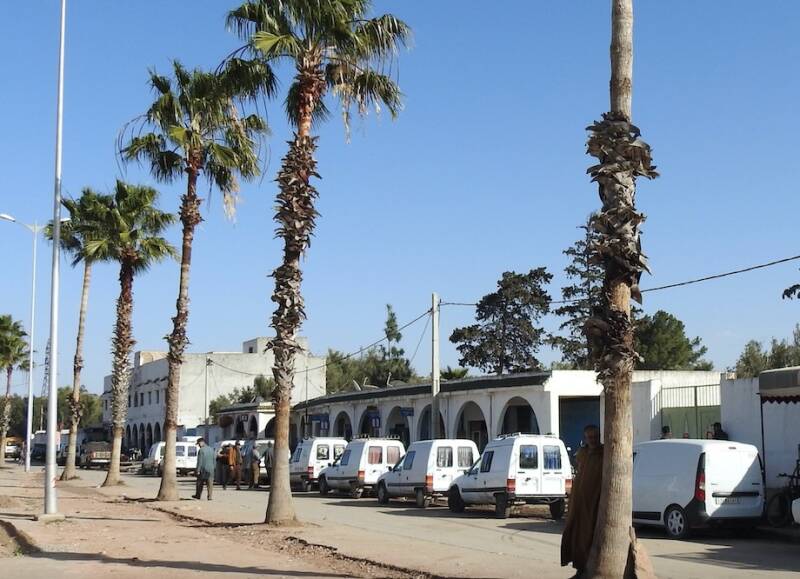 We zijn naar Ounagha gereden, naar camping Des Oliviers. Een heel mooi aangelegde en goed onderhouden camping met zon en schaduw, bomen en struiken zoals Hibiscus en Bougainville. Er vliegen kleine koolwitjes en de Grijze Buulbuul kwetteren er lustig op los. We hebben vanmiddag dan ook weinig tot niets gedaan, lezen is toch een wat passieve activiteit maar wel leuk met dit zonnige weer. We zijn hier vaak geweest en soms gingen we dan met de grand taxi naar de hele grote souk in Had Drâ die hier op zondag is. Daarom zijn we nu ook hier naar toe gereden, het is al weer een aantal jaren geleden dat we daar voor het laatst zijn geweest. De laatste keer dat we wilden gaan was het veel te modderig, daar is nu geen sprake van, het is een van de droogste zomers ooit geweest in Marokko en ook nu is er nog niet veel regen gevallen.