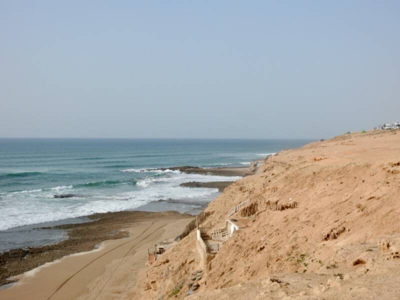 We zijn vanmorgen eerst naar de Carrefour (N30.3893148 W 9.5101268) gereden in Agadir, die lag vrijwel op de route. We hebben daar niet alleen wat wijn ingeslagen maar ook een voor ons nieuw product , Paté de Sardines in een blikje, iets wat we alleen kenden van Portugal maar nog niet in Marokko waren tegengekomen. We hadden dat van Ingrid gehoord, het zijn blikjes met de zeer originele naam Essaouira… Bij de traiteur-afdeling hebben we een Pastilla met kip gekocht en een loempia met zeevruchten. Beiden erg lekker hoewel Everdien meer van gekruide kip dan van de zeevruchten-smaak houdt. Het was trouwens wel een hele grote nieuwe Carrefour in een winkelcentrum die in Spanje of Frankrijk niet misstaan zou hebben. We konden bij het afrekenen in de Carrefour kiezen tussen betalen in Euro's of Dirhams, wij hebben voor Euro's gekozen, we weten niet of dat enig verschil maakt.