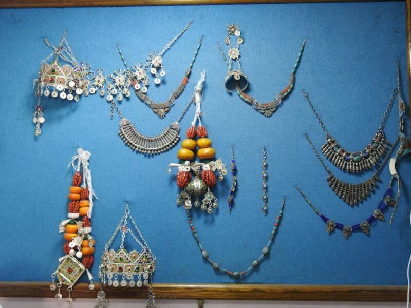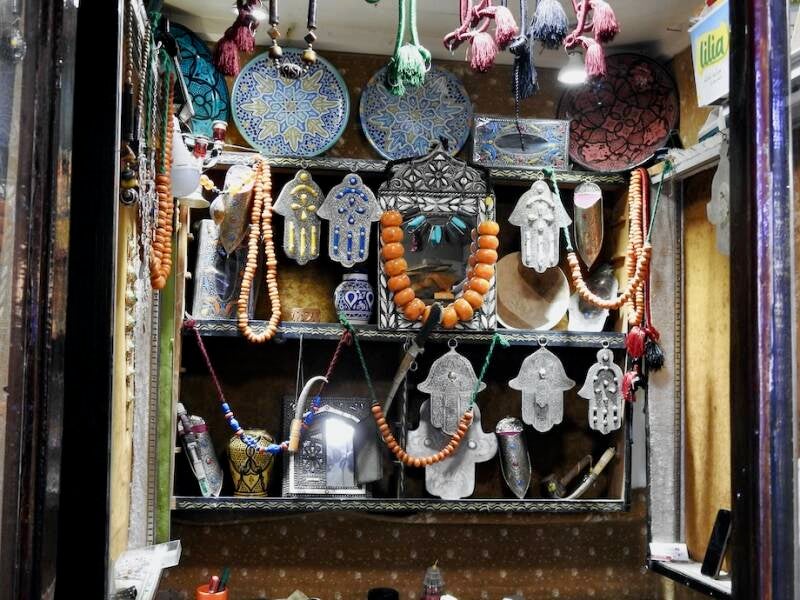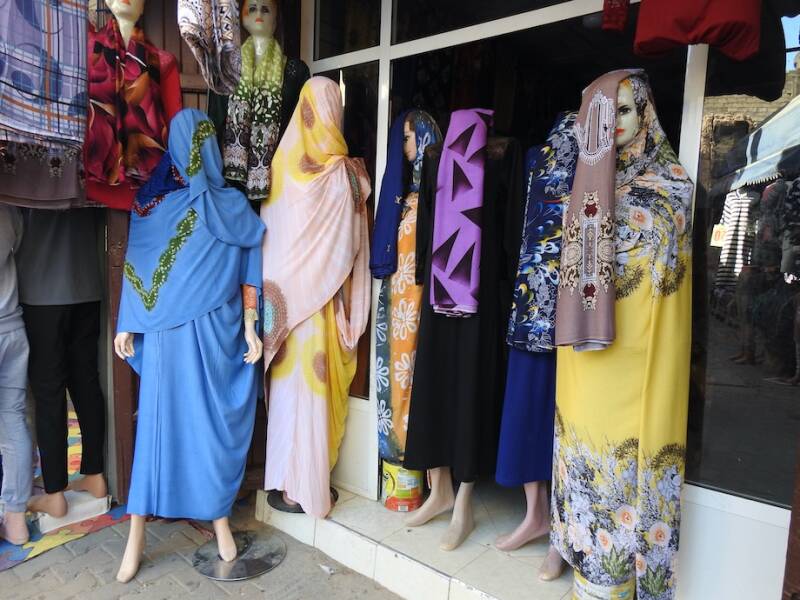 Winkel met traditionele feestkleding in de souk in Tiznit.