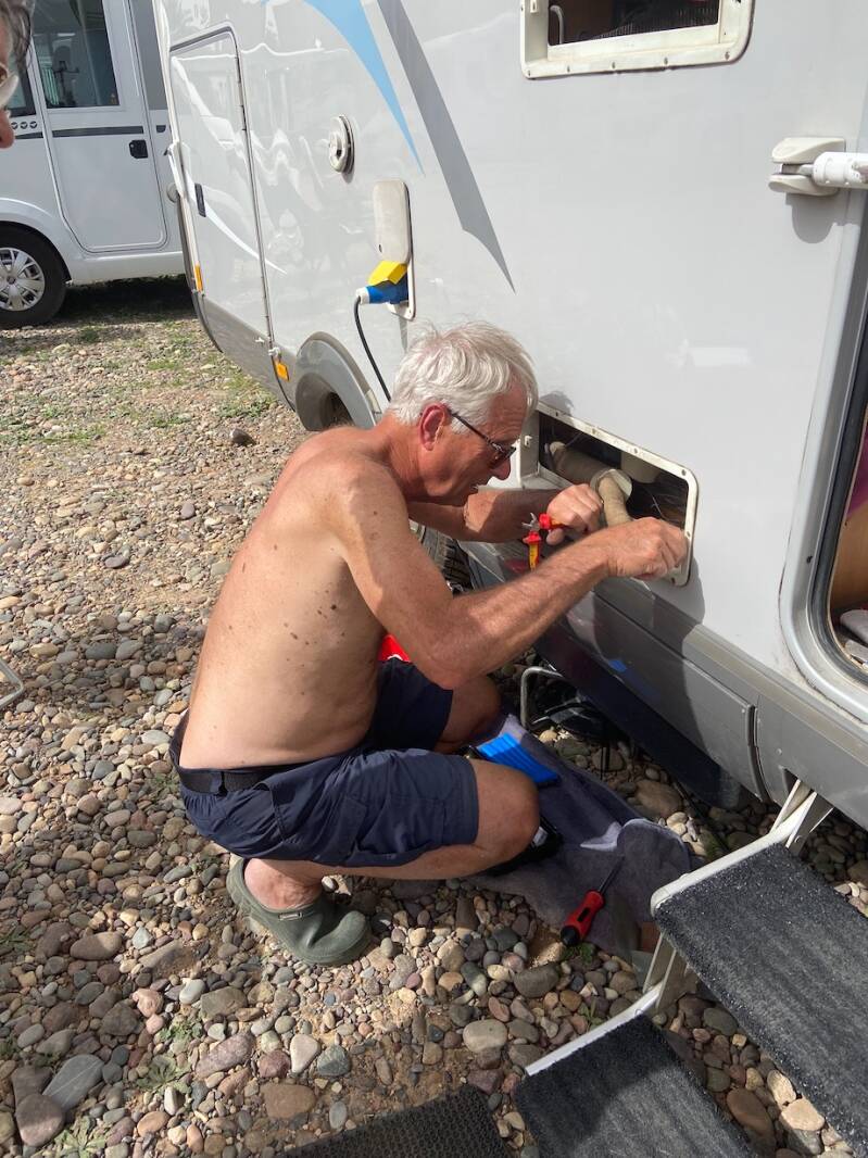 Voor de 2e maal in een paar weken gebruikt Pieter zijn onuitputtelijke technische vaardigheden met het daarbij behorend arsenaal aan gereedschap om onze koelkast weer reukloos te laten functioneren op gas. We zijn daar heel blij mee, wat heet super blij met de hulp van Pieter.