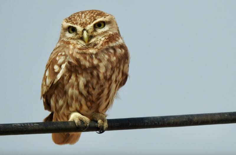 Vlak voor onze camper ging een Steenuiltje op een telefoondraad zitten, dat was dus genieten.