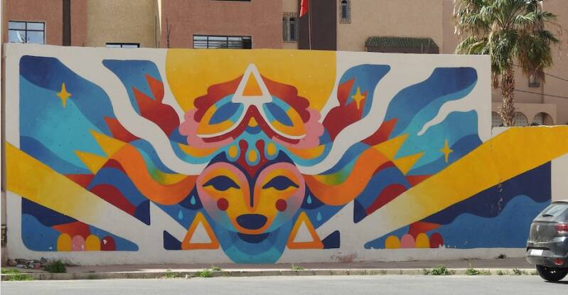 Muurschildering van Berbervrouw door gemaakt door plaatselijke kunstenaar.
