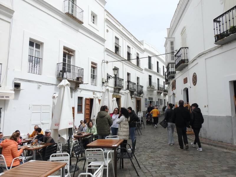 We wilden vandaag naar Jerez de la Frontera gaan, maar dat pakte dus anders uit. We staan nog in Tarifa en dan niet omdat de wind is gaan liggen hoewel dat mooi meegenomen is. En ook niet omdat het zondag is en dan veel plekken bezet zullen zijn, zo ook hier vannacht, alle 80 plaatsen zijn bezet. We hebben gisterenavond besloten dat het niet verstandig is om in kleine witte Andalusische dorpjes in de bergen te vertoeven maar dat we meer langs de Mediterrane kant weer richting huis moeten gaan. Mijn voet is nog steeds niet zoals die moet zijn, dat is de laatste paar dagen gebleken. We wilden al stedenbezoek vermijden, daarom leek het kleine Tarifa geschikt om te kijken hoe het bevalt om een paar dagen achter elkaar 5 à 6 km te lopen. Dat viel tegen als ik eerlijk ben tegenover Everdien en mijzelf, dus deze beslissing genomen die wel wat pijn deed gisterenavond. Het valt niet mee om toe te geven dat je lichaam zich tegen je keert maar na even een emotioneel moment probeer je te relativeren, ik verrek gelukkig niet van de pijn. We hebben al een paar fijne zomerse Marokko maanden gehad, wel met wat kleine medische perikelen, maar toch. En het is ook niet zo dat we nu halsoverkop richting huis scheuren. We zullen wat meer luieren en lezen, noodgedwongen wat minder lopen. En we houden van steden, natuur maar ook van het strand, de zee.We zien het nu als een nieuwe uitdaging om er wat leuks van te maken, kijken of we wat meer kunnen fietsen. Mocht het helemaal fout gaan met de voet en er weer medische hulp nodig mocht zijn, dan is die sneller in de buurt van de kust te vinden dan in het binnenland. Of we gaan sneller naar huis, met het rijden heb ik geen last, misschien mede dankzij de brace die ook draag.