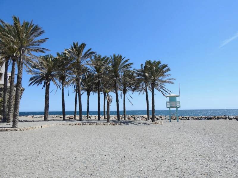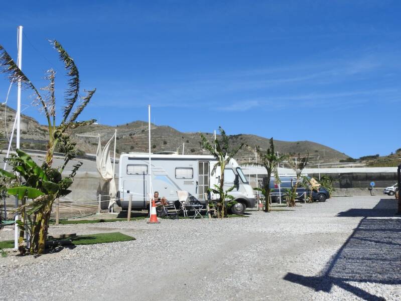 We komen van de Costa del Sol en staan nu aan de Costa Tropical die een stuk minder toeristisch is. De kust dankt zijn naam aan de vele tropische vruchten die hier geteeld worden zoals bananen, papaja’s , mango’s en avocado’s. En dat onder plastic zodat er in de provincie Almería onafzienbare grote oppervlakten met plastic kassen bedekt zijn, hier valt het nog mee hoewel rondom de cp ook kassen staan.