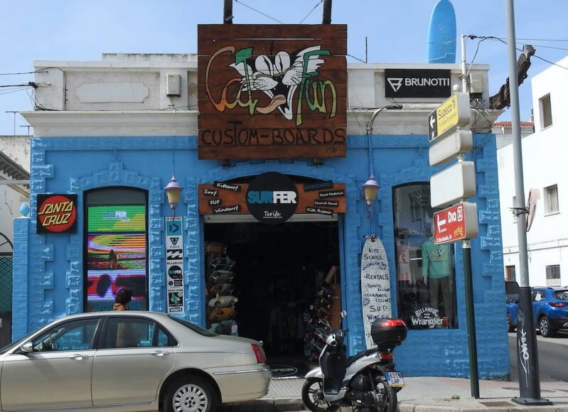 Door de ligging van Tarifa, waait er altijd een stevige wind en Tarifa en omgeving zijn daarom een surfparadijs. We zijn hier een jaar of 10 geleden vlakbij geweest en hebben toen vrij gestaan op de zgn koeienwei, een plek die nu niet meer gedoogd wordt. Daar waren toen erg veel surfers die daar stonden, slechts een klein deel van de surfers zijn nu neergestreken op de cp in Tarifa waar wij ook nu staan. De rest staat overal in busjes in de straten geparkeerd.