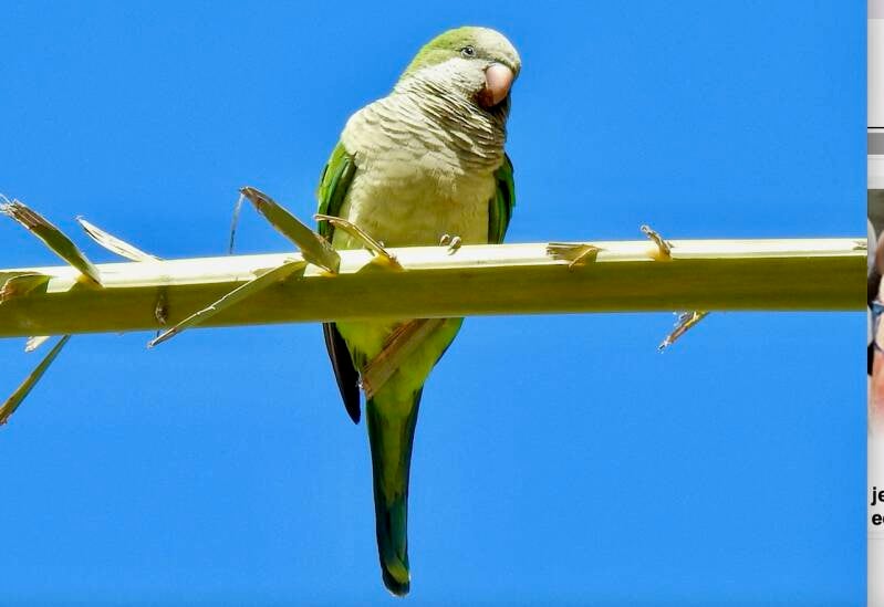 Er zijn hier erg veel monniksparkieten, ook wel Argentijnse papegaaien genoemd en als bijnaam lawaaipapegaai.. Dat is op meerdere plaatsen in Spanje zo maar langs de kust en dan vooral in Malaga en omgeving vormen ze een ware plaag. Niet zozeer vanwege het lawaai wat ze maken maar omdat ze schade veroorzaken aan landbouw- en siergewassen. Vegetatie wordt verwoest door vraat aan jonge boompjes en levende bomen worden kaalgeplukt voor nestmateriaal. Monniksparkieten komen niet voorin Spanje van origine , ze zijn ontsnapt of vrijgelaten omdat ze zo krijsen in de huiskamer of balkon. Ondanks het verbod op de verkoop van monniksparkieten in 2013 is hun aantal in de Spaanse grote steden blijven groeien. In de parken van Madrid zijn de aantallen gestegen van zo’n 1.700 vogels in 2005 naar 12.000 vogels in 2019. Daarmee bevindt ongeveer de helft van alle monniksparkieten in het land zich in de hoofdstad. In Madrid is men begonnen met het afschieten van monniksparkieten, ze vormen ook een gevaar door de enorme nesten die ze bouwen. Die kunnen wel 100 kilo wegen, als die naar beneden donderen uit de palmboom dan kan dit natuurlijk schade aanrichten.