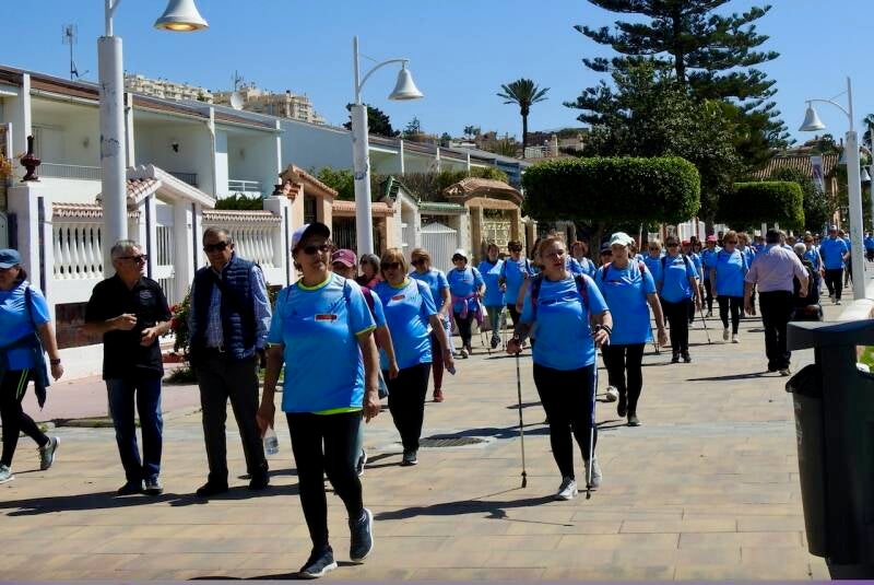 We zijn gaan fietsen, niet richting Málaga maar naar Rincon de la Victoria. Een leuke fietstocht langs de zee die ook door een paar fietstunneltjes gaat. Het was erg druk met wandelaars, fietsers en een klas schoolkinderen was een pad over de rotsen aan het lopen. Onderweg een paar x gestopt vanwege het mooie uitzicht. In Rincon de la Victoria was een dameswandelfestijn, wel meer dan 100 wandelaars met blauwe truitjes, de meeste met Nordic Walking sticks bij zich. Terrasjes waren gezellig druk, niet alleen met ouderen trouwens. We wilden een kop koffie drinken maar het was al 14.00 uur dus leek het beter om terug te fietsen naar de camper. We wilden nl sardientjes gaan eten, hadden we ook in Rincon kunnen doen , maar ik wilde een kleine wandeling maken, oefening voor de voet.