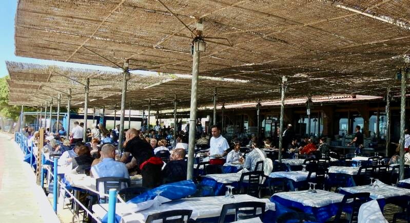 In het begin van de avond even de benen gestrekt die ons haast automatisch leidden naar een chiringuito vanwaar we, in de luwte gezeten , een mooi uitzicht hadden over de zee en zelfs Marokko weer zagen liggen in de verte. Er hadden zich wat meer kitesurfers op het water gewaagd, wel in de buurt van het schiereiland waar de wind iets gunstiger was w,s, En onder het genot van een drankje hadden we het gevoel dat we de juiste beslissing hadden genomen om dit stukje Spanje voor een deel te ontdekken hoewel dat natuurlijk maar een moment opname, eigenlijk meer een gevoel is.