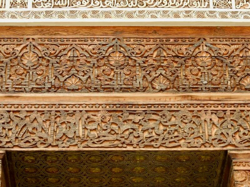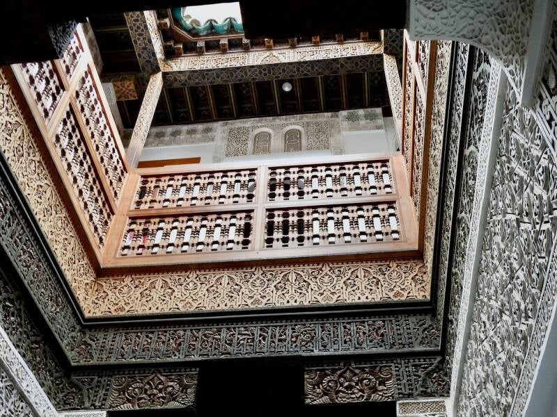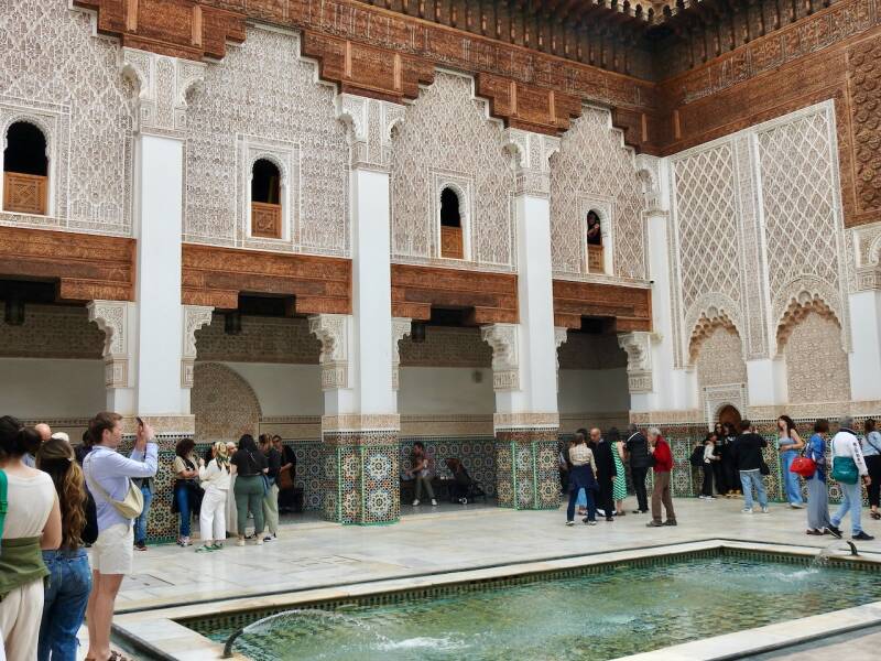 De binnenplaats van de Medersa Ben Youssef en nog veel meer forto's