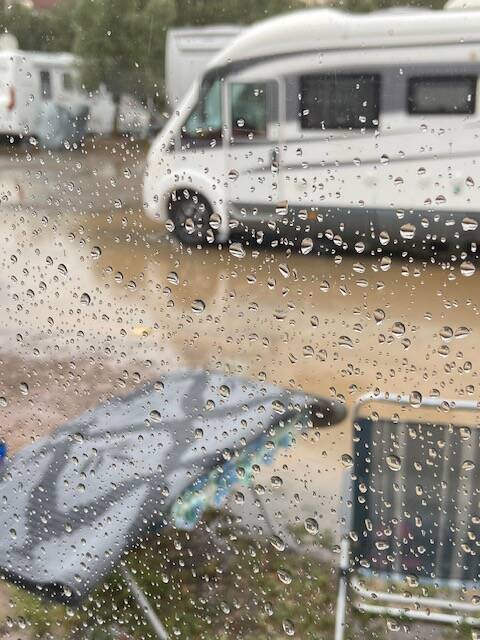 Op de camping stond een dun laagje water door tamelijk veel regen in korte tijd.