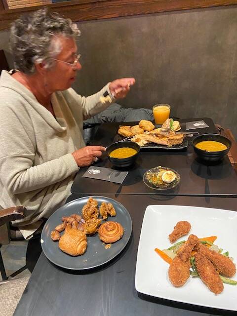 We zagen geen restaurantjes die open waren , wellicht tegen de avond, we hadden bij Cis en Riet gelezen dat ze in de buurt van de camping een paar dagen geleden nog heerlijk gegeten hadden. Maar we hebben eerst nog wel een aantal lekkere dingen gekocht, Everdien wil wel koken vanavond en eventueel morgen ook.