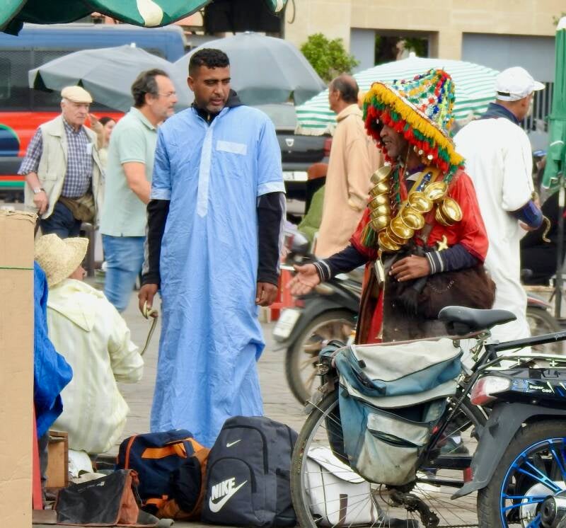Stereotiep beeld van een waterverkoper op het Djema El Fna plein, je ziet ze minder dan vroeger