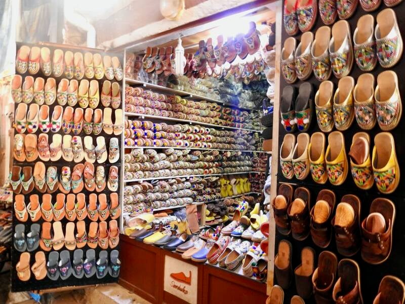 In een paar kleine straatjes in Tafraout worden babouches gemaakt en verkocht. Wij gaan altijd bij een (stok)oude vader en zoon onze babouches kopen , iedere keer zijn we verbaasd dat de oude man nog leeft.