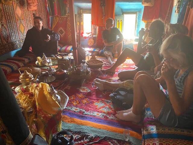 Gezamenlijk aan de thee, door ieder Marokkaan Whisky Berbere genoemd