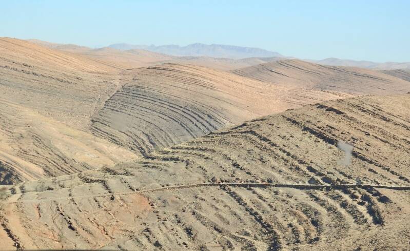 De mooie geplooide bergen, alsof een reus er met een stofkam over heen is gegaan