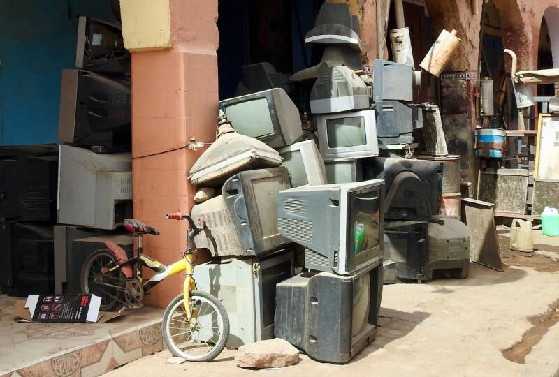 We zijn rond het middaguur naar het centrum gelopen, 1km van de camping verwijderd. Het was nog redelijk druk op straat, we hebben wat rond geslenterd nadat we blauwader kaas , Griekse yoghurt en verse aardbeien hadden gekocht. We kwamen oa door een heerlijke rommelige straat met wat kleine garages en een winkel met een verzameling oude t.v.’s. Er was volop bedrijvigheid bij de kleine bedrijfjes in de straten, na 14.00 uur was het afgelopen, dan is het tijd voor de middagsluiting en voor de moskee, zeker op vrijdag.