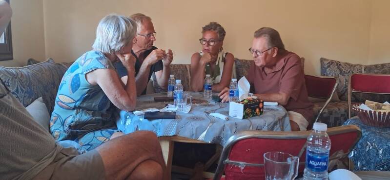 Vanmiddag hebben we dan de laatste keek op de dag gehad. Met enige weemoed beseften we dat het voor ons de laatste keer zal zijn dat we met deze fijne mensen dit hier in Marokko zullen meemaken. Het zij zo, morgen gaan Pieter en Leny richting zee evenals Marjos en André, die gaan wat noordelijker. De overige 6, onszelf meegerekend, gaan naar Taroudant.