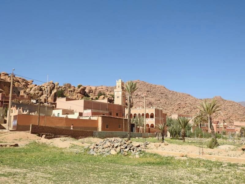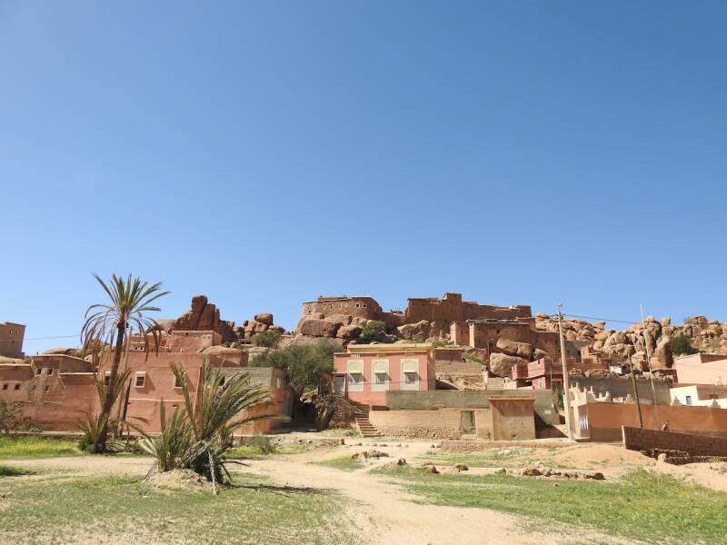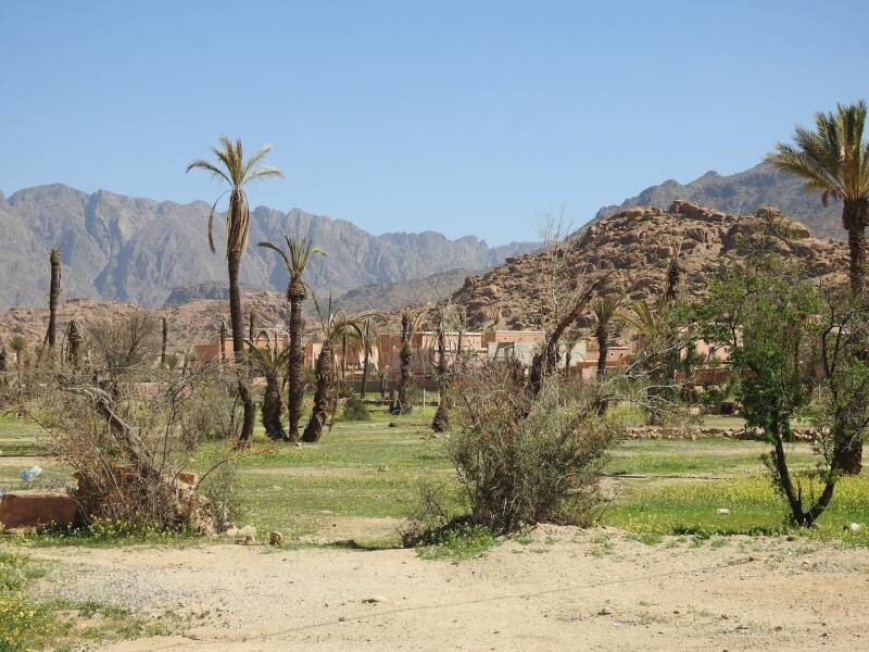 Vanmorgen zijn we naar Tazka gewandeld , een klein dorpje vlakbij Tafraout. Elke keer dat we in Tafraout zijn wandelen we daar wel heen. Eerst kom je door de palmerai , hier staan ook veel campers. Wij hebben er ook wel gestaan maar je bent wat verder van Tafraout af dan in het keteldal. In de Palmerai staan Arnold en Janny uit Zelhem, we hebben weer wat bijgekletst , we hadden ze ontmoet in Marrakesh.