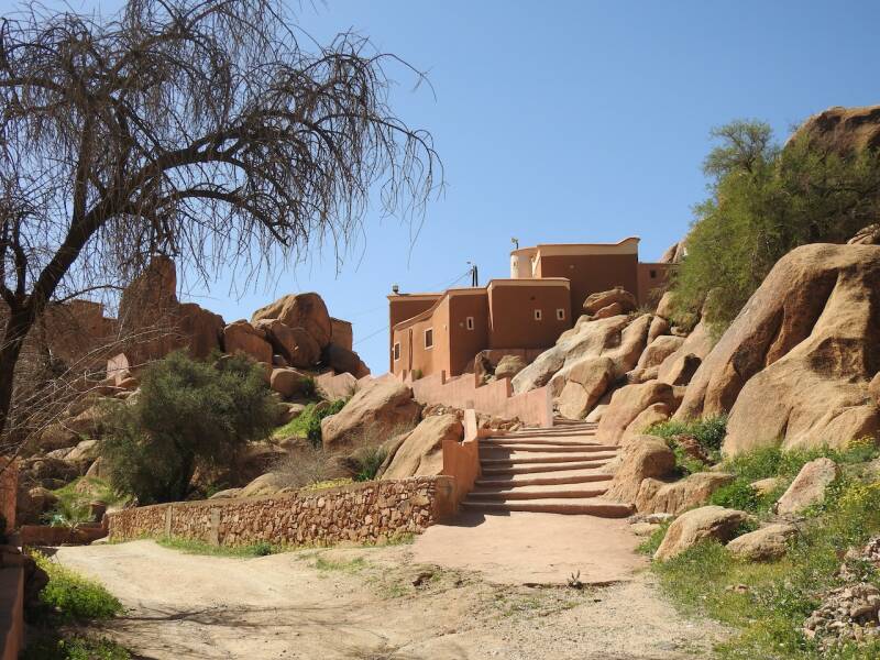 De ene keer schrijf ik Mohamed, de andere keer Mohammed. Beide schrijfwijzen zijn goed. Je ziet het ook bij plaatsnamen, bv Ounagha en Ounara. Dit stamt uit de Franse bezettingstijd , veel namen worden gespeld volgens Frans klankregels. Er spelen nog meer factoren mee voor de verschillende schrijfwijze van namen of plaatsnamen maar het belangrijkste is wel de omzetting van het Arabische naar het Latijnse alfabet zoals wij dat kennen. Zo kun je ook Bastila ( het gerecht dat we gisteren gegeten hebben)schrijven of Pastila. Bastila komt dichter bij de Marokkaanse uitspraak , in het noorden zegt men meestal Pastila vanwege de Spaanse invloed vroeger. Waarschijnlijk komt het van oorsprong ook uit het Spaans , pastilla is een klein taartje. Komen we bij Tafraout, ook wel Tafraoute, dat is een minder gangbare spelling. Tafraout betekent in het Berbers, het Tamazight , kom of dal, we zijn weer, zonder uit de stoel te komen, in het keteldal.