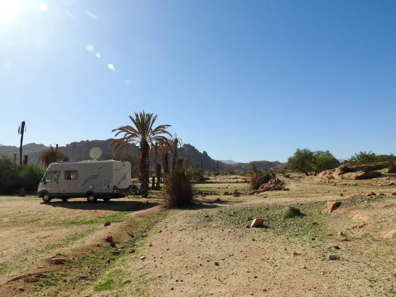 Als je afgaat op de temperatuurvermelding van Polarsteps, dan zouden we al 2 dagen met 30º hebben gehad en 1 dag zelfs 33º. Dat is quatsch, het is wel warm in Tafraout met de laatste dagen temperaturen rondom de 25º, wat ongeveer 5º boven het langjarig gemiddelde is. Pieter heeft een geijkte thermometer en we hebben hier wel 26º gehad, dat was de dag dat Polarsteps 33º vermeldde. Wel voelt het af en toe erg warm aan, als het windstil is. We zitten op ruim 1000m hoogte, de lucht is wat ijler en de zon staat hoog aan de hemel. Kortom een prima winter al een tijdje.